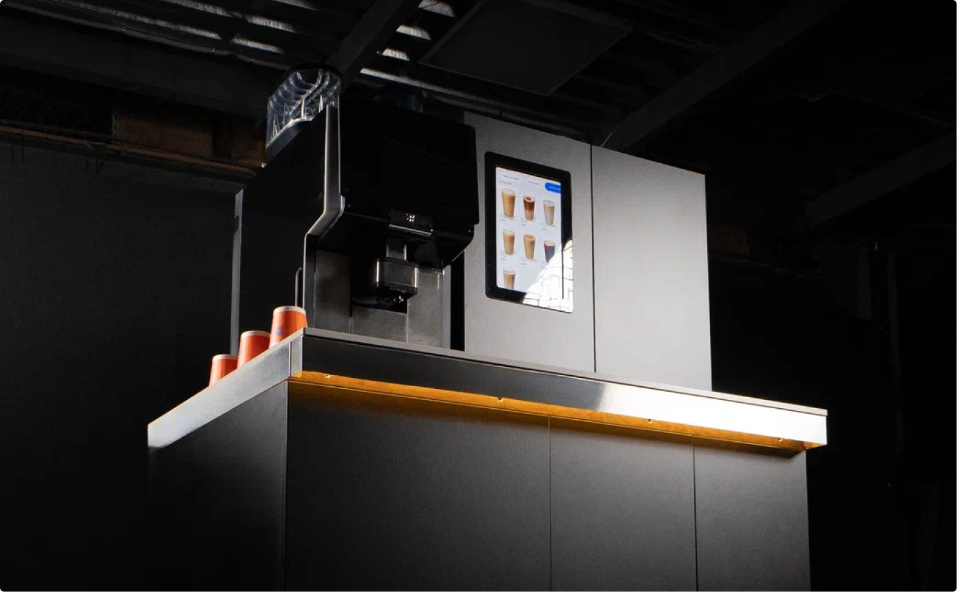 DrinkX Express — это автономный кофейный комплекс самообслуживания, построенный на базе профессиональных кофемашин WMF или Eversys, способный готовить широкий ассортимент напитков, включая авторские рецептуры и варианты с сиропами